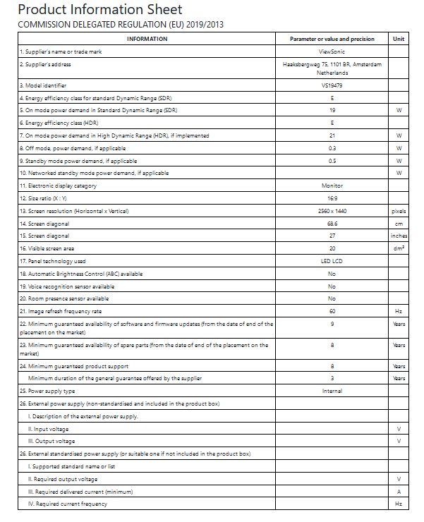 The VG2757V-2K is an EPEAT, EnergyStar, and TCO certified product that can save on energy costs while reducing greenhouse gases.